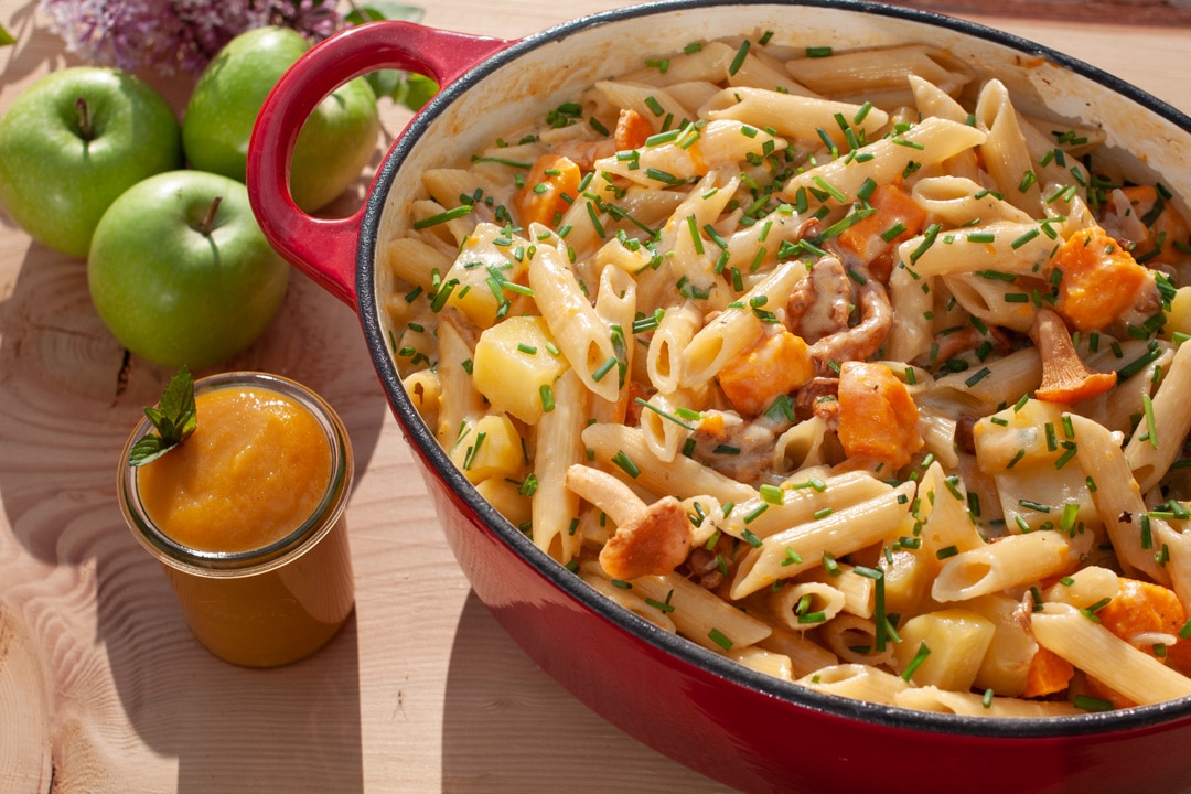 - Serviere deine Älplermagronen mit dem Apfelmus.