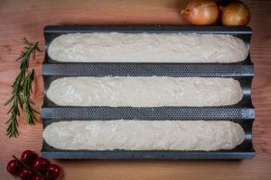 - Das Baguette-Backblech mit etwas Trennspray oder Pflanzenöl benetzen.