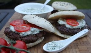 Der heute hier vorgestellte Hamburger entführt einen geschmacklich nicht in die USA, sondern in den Orient. Lammfleisch, Kreuzkümmel und Tahin (Sesampaste) sorgen für besondere Aromen. Die Buns aus Pita-Brot sind fester und Dank des Schwarzkümmels aromatischer als „normale“ Burger-Buns. Es ist wichtig, sie kurz vor dem Essen von beiden Seiten knusprig braun zu grillen. Dann erinnern sie an das Brot, das für Döner Kebab verwendet wird. Wenn man den „Döner-Effekt“ noch verstärken will – rohe rote Zwiebeln passen hervorragend auf den Burger.