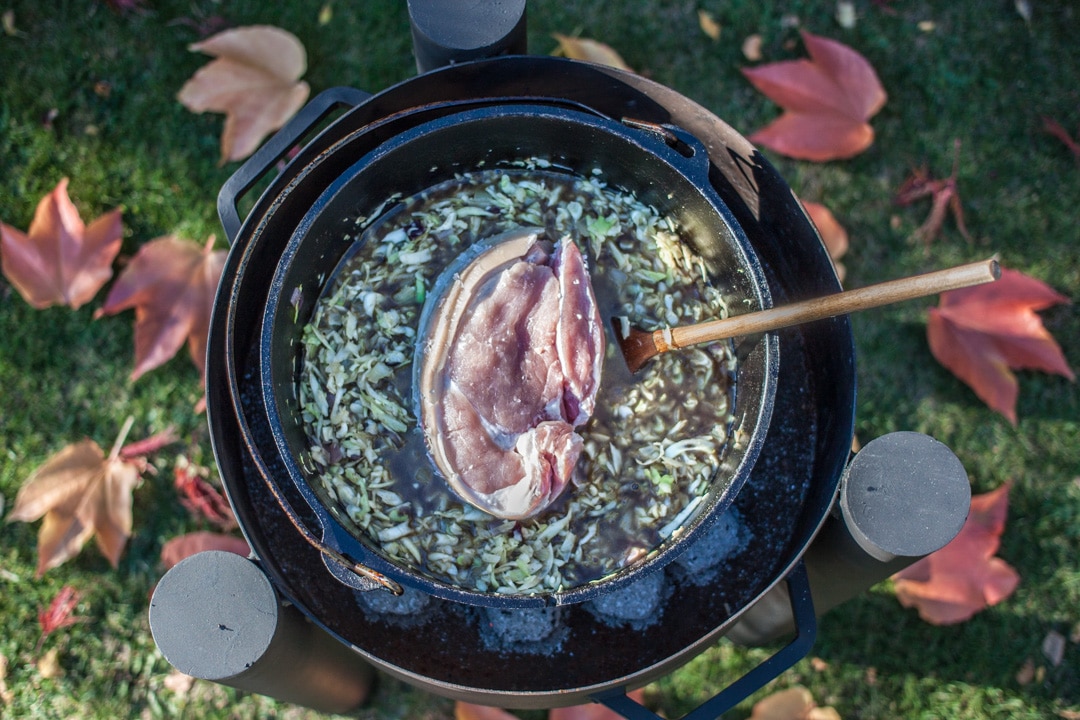 Schinkenbraten mit Bayrisch Kraut aus dem Dutch Oven