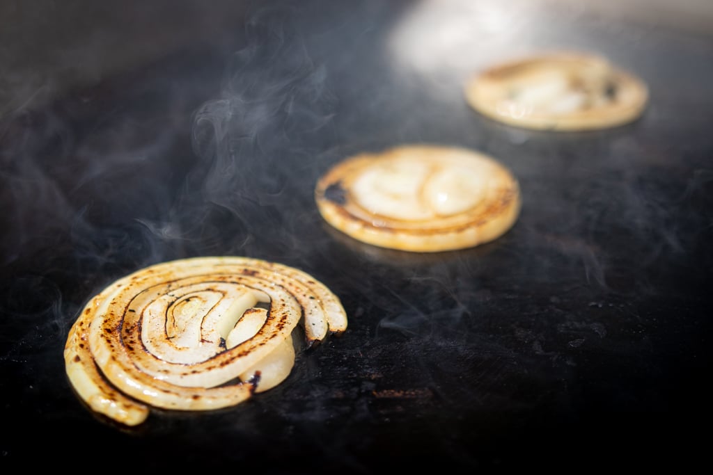 Hackfleisch verlangt nach hohen Temperaturen, damit sich Röstaromen entwickeln. Für die Smashed Burger kann die Plancha *, die Grillplatte oder die Feuerplatte also kaum zu heiß sein. Wenn du einen Grill verwendest, entferne die Abdeckungen der Brenner über der Griddle, damit viel Hitze am Metall ankommt.